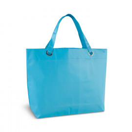 Cooler bag with outside in resistant paper of 135gr/m2 and body in natural colour, with coloured details. Isothermal inside in aluminium finish, with matching colour carrying handle...