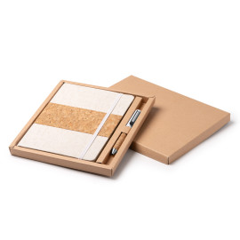 Notebook and pen set provided in a kraft cardboard case. A5 format notebook with a hardcover made of cotton and cork, consisting of 80 smooth sheets. Metal ballpoint pen with a cork grip. Blue ink...