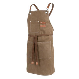 Kitchen apron made of 50% cotton and 50% polyester, two large pockets on the front and one pocket on the chest with PU details. Shoulder strap fixed with carabiners, PU details on the shoulder strap. Adjustable strap...