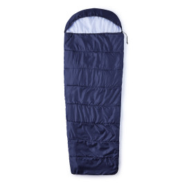 Padded sleeping bag made of recycled polyester. Full zip opening. Comes with a coordinating colored pouch with drawstring closure...