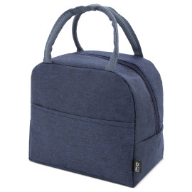 Cooler bag made of Rpet with melange finish, large main compartment with zip, open front pocket. Rpet external label...