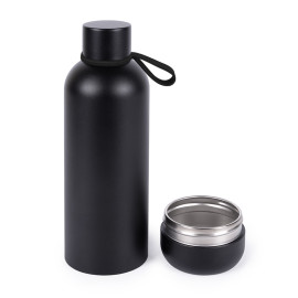 Double-walled stainless steel insulated water bottle with screw cap and convenient carrying strap. Built-in cup. Capacity: 430ml. Sold individually...