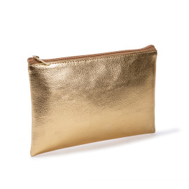 Gold-finish clutch bag with matching zip pull, in 350 g/m² PU, free from harmful substances and REACH certified...