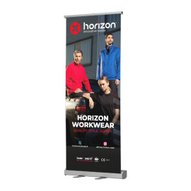 Roll-up promoting the Horizon collection. Consisting of pvc sheet, aluminium support and suspension hook. Supplied with carry bag...