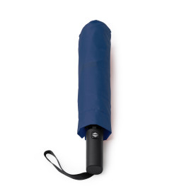 8-panel, 3-section, folding umbrella with outside in a wide range of bright tones and silver colored inside. 95cm in diameter, with manual opening and in resistant polyester material. With metal ribs in black color, velcro closure and carrying strap in handle. Presented in a matching color individual case with silver colored accessories...