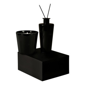 Fragrance set consisting of a scented candle and a glass jar with sticks, vanilla fragrance. Comes in a gift box...