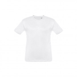 Детска(унисекс) тениска със стандартна кройка от 100% памук (190 г/м²) с кардирана памучна прежда. Има 1x1 ластична яка с подсилваща лента от трико и двоен шев на ръкавите и долната част. Размери: 2, 4, 6, 8, 10, 12..