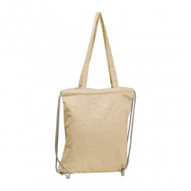 Oeko-Tex® STANDARD 100 certified, recycled cotton bag with long carrying handles, additional carrying cords and a grammage of 140g/m². The logo is printed on one side of the bag...