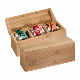 С тази кутия за чай, изработена от бамбук, вашите пакетчета за чай са защитени от влага и светлина. Размер:21×6,5×8,5см..