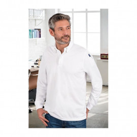 50% polyester, 50% cotton. 210 grs/m2 piqué fabric. Collar and cuffs flat knit. Double stitching on sleeves. Front with piping. 2 self-coloured buttons. Lateral bands. Bottom side slits. Loose pocket included...
