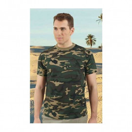 Мъжка тениска изработена от 100% пръстенопреден памук - 160 grs/m2 единично трико. Оребрено кръгло деколте. Плат с камуфлажна щампа. Двоен шев на врата, долната част и ръкавите. Направете запитване за големи количества и брандиране на office@reklamista.bg или се обадете на: 0882 753 404 0897 099 438 0893 076 40..