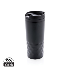Модерна чаша от неръждаема стомана с геометрични детайли. Вътрешното тяло е изработено от пластмаса. Не се препоръчва миене в съдомиялна. Съдържание 300мл...