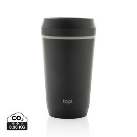 Meet the Topl Cup, your perfect fit for barista size 12oz (354ml) for your favorite tall brew. Made with RCS certified recycled materials and vacuum insulated, it keeps drinks at the perfect temperature. Its patented 360° sip design and transparent lid offer practicality and style for your daily adventures, whether you’re strolling the park or comm..